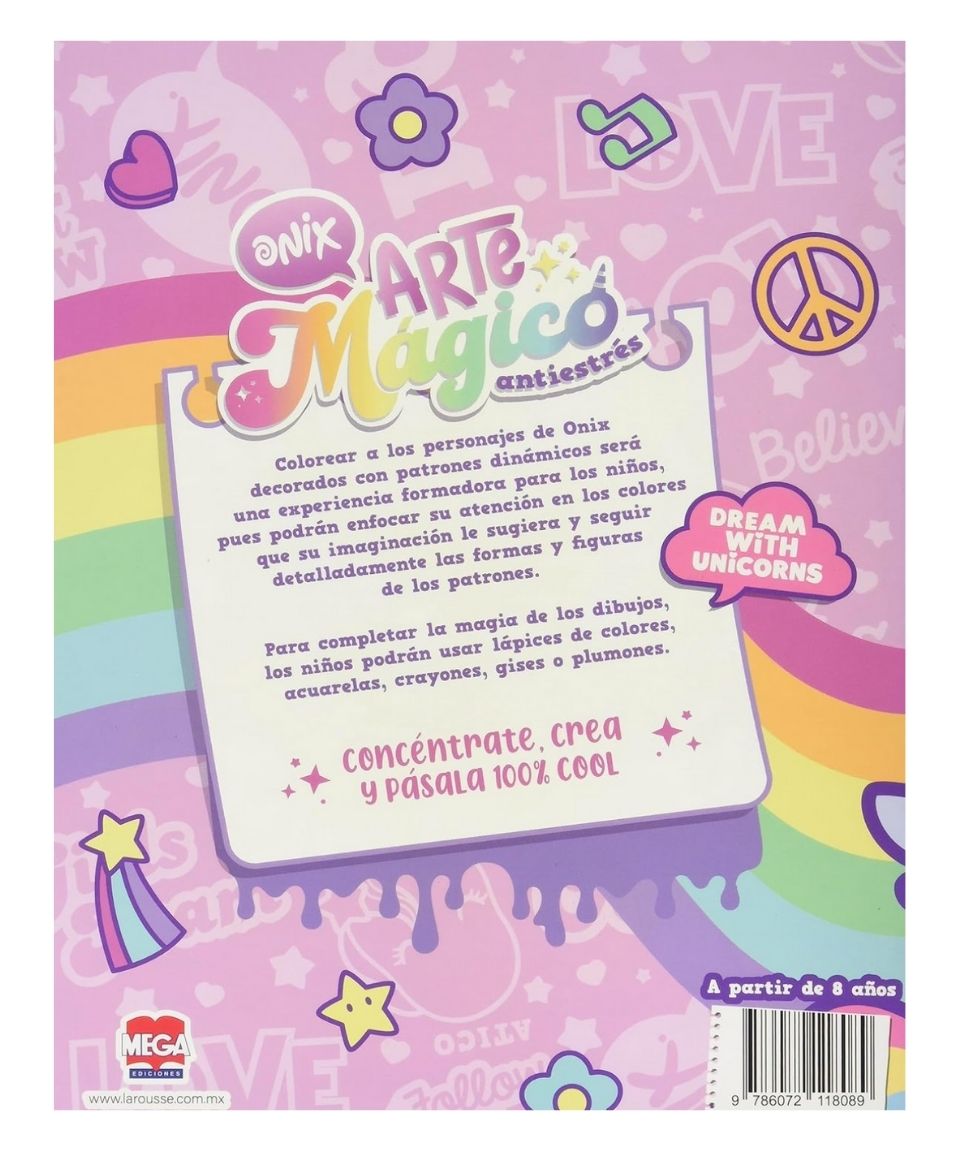 Es un libro ideal para que las niñas se relajen, se concentren y disfruten del arte mientras colorean. Incluye ilustraciones de los personajes de Onix decorados con patrones dinámicos y divertidos, pensados para estimular la imaginación y ayudar a enfocar la atención a través de formas, figuras y detalles encantadores. Colorear se convierte en una experiencia tranquila, creativa y llena de magia.