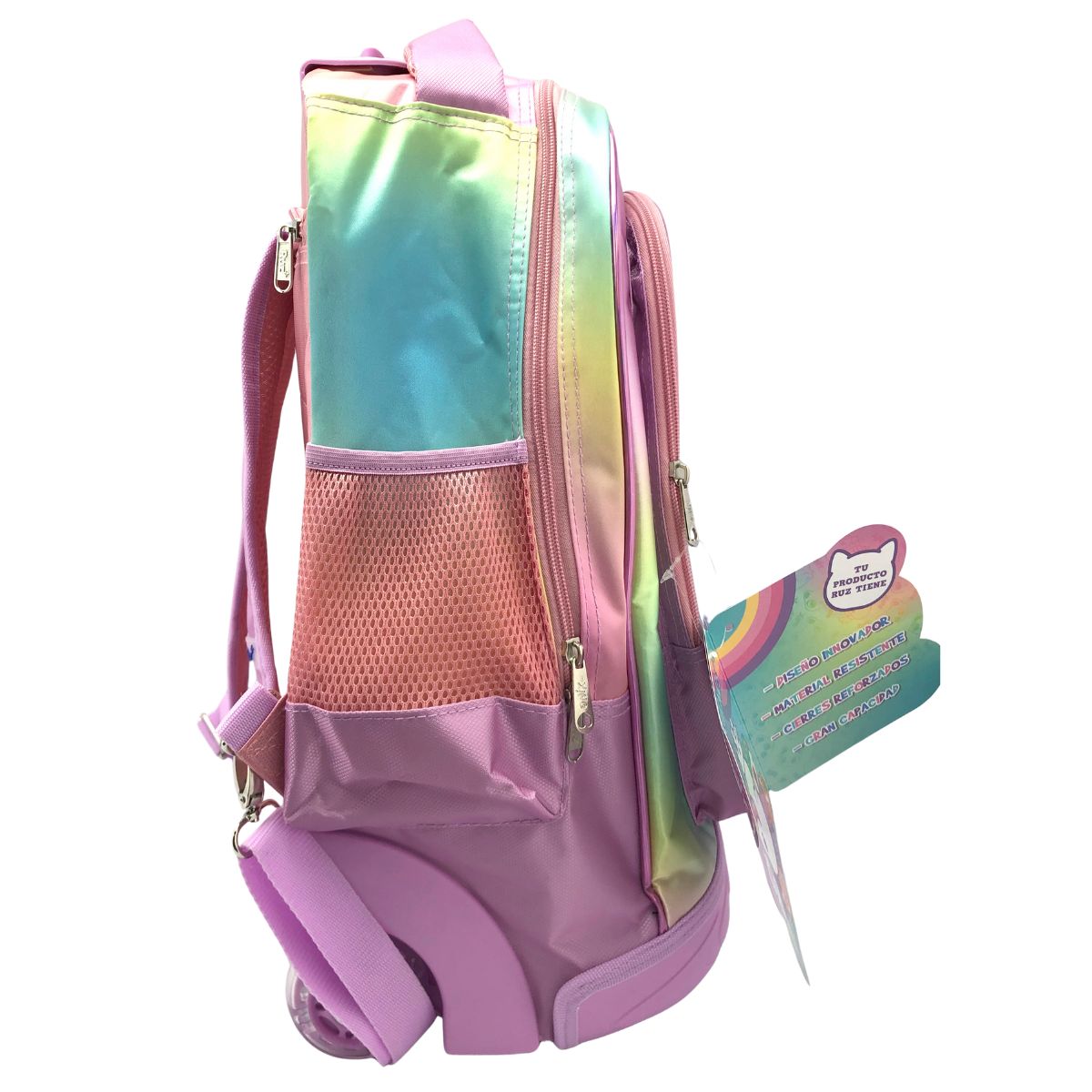 La mochila que convierte cada día de clases en un mundo mágico. Diseñada para niñas que aman los colores, los personajes cute y los detalles que hacen brillar su estilo.Su diseño combina gatitos adorables, un unicornio soñador y tonos pastel tornasol que roban miradas en cualquier pasillo. Es más que una mochila… ¡es su compañera de aventuras!