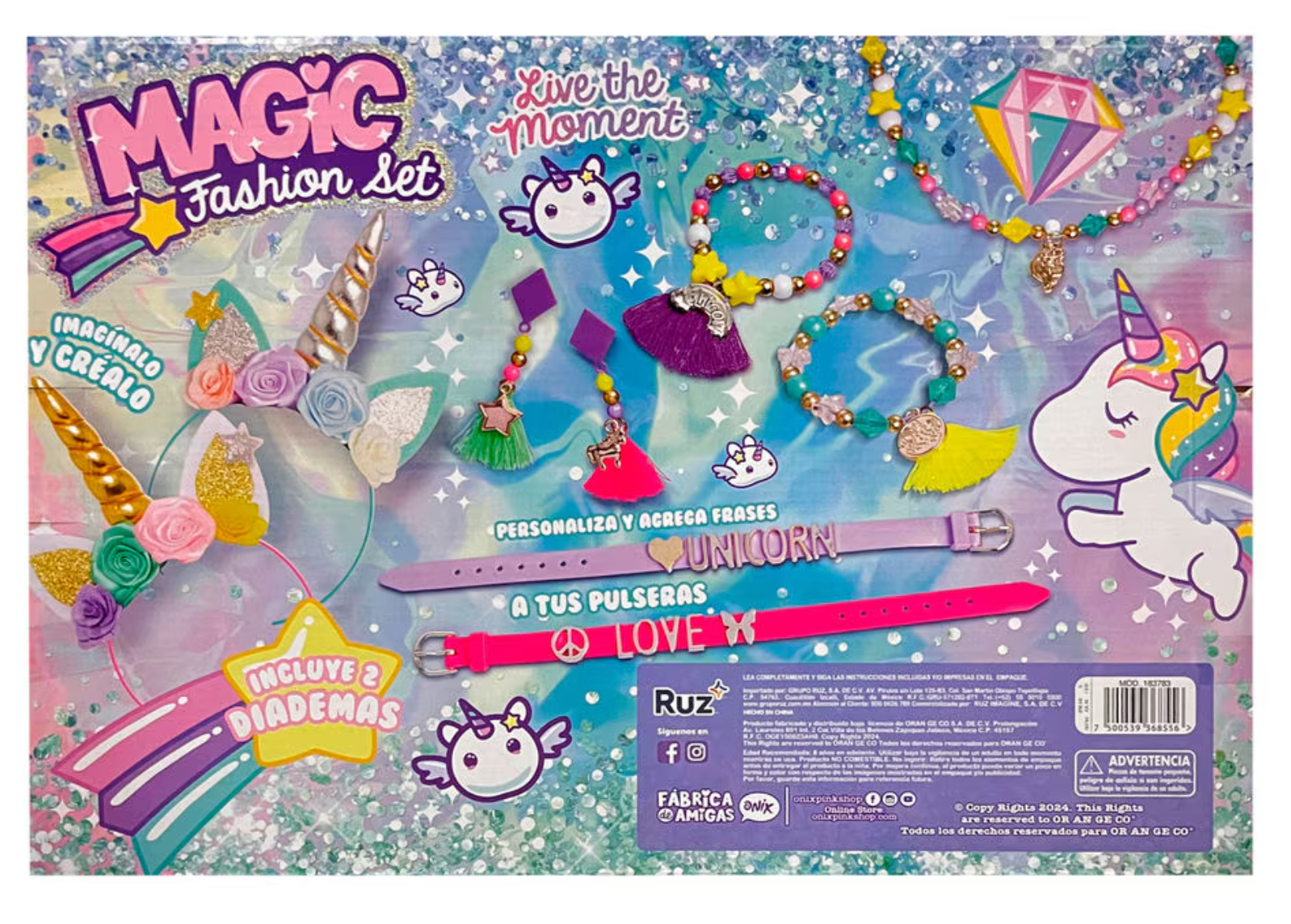 Deja que la magia, la creatividad y el glitter cobren vida con el Set Fashion Magic Unicorn, un kit diseñado para que las niñas creen accesorios únicos mientras se divierten y expresan su estilo.